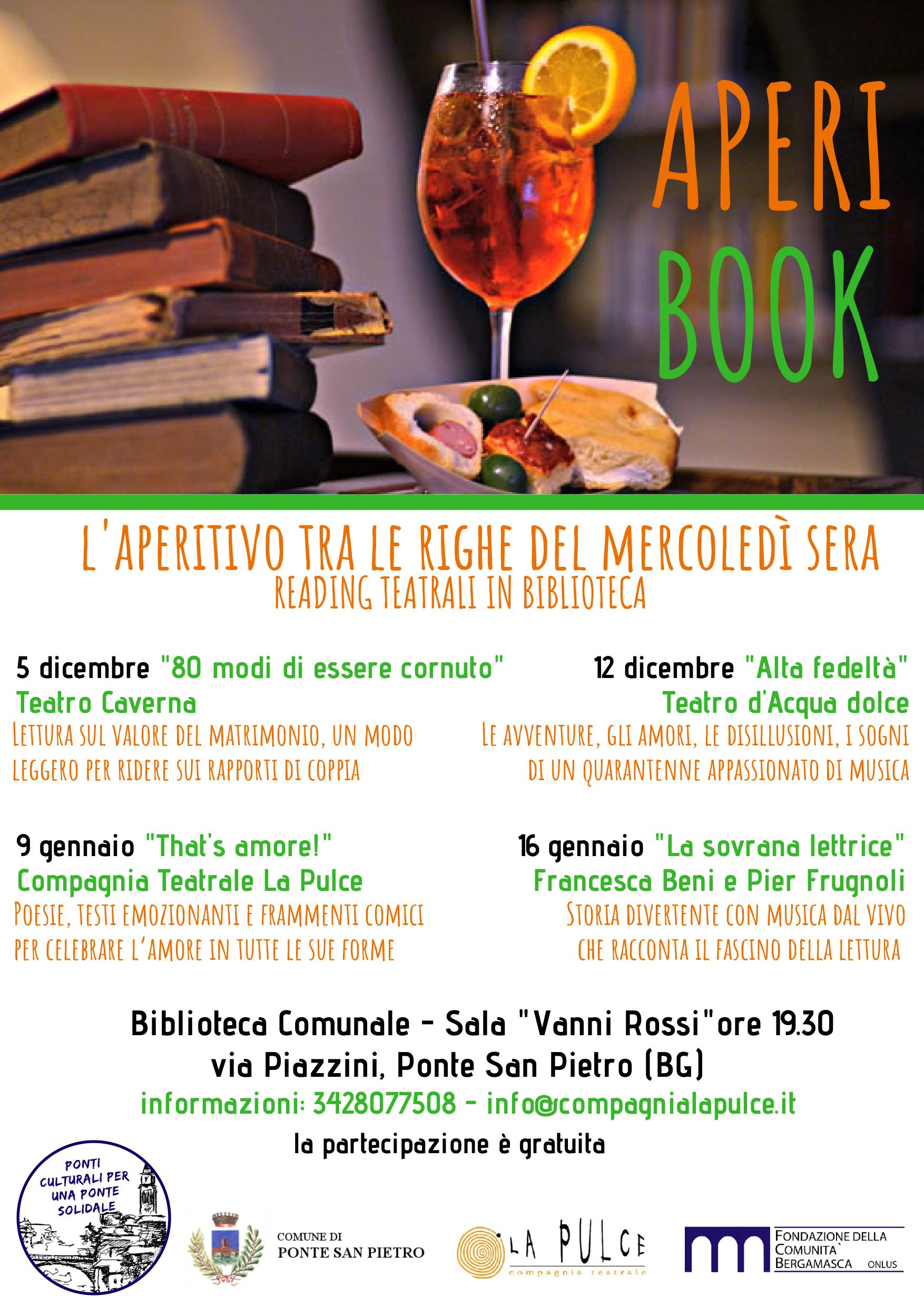 A partire dal mese di dicembre ha inizio «Aperibook», una serie di quattro serate di reading teatrale organizzate dalla Compagnia Teatrale La Pulce, in collaborazione con il Comune e la Biblioteca di Ponte San Pietro e parte del progetto «Ponti Culturali per una Ponte Solidale», che prevede un anno di eventi a carattere artistico e culturale nel Comune di Ponte San Pietro.