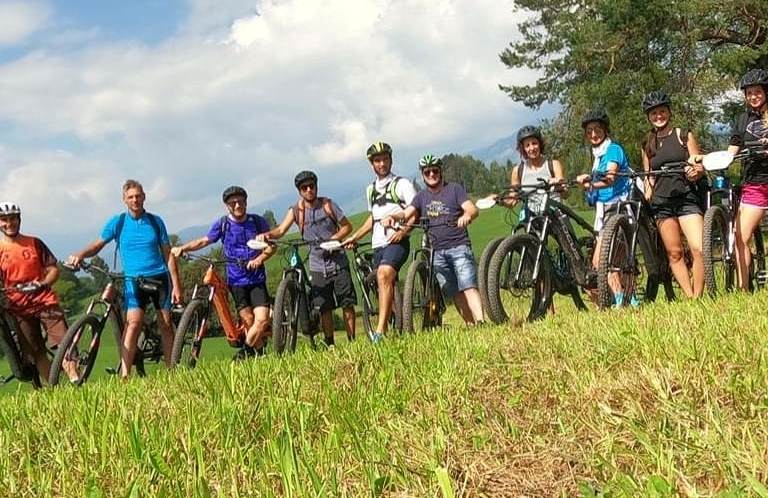 Raccomandiamo di usare dei pantaloncini con il “fondello” (quelli da ciclista imbottiti) Se non hai abbigliamento specifico da bici/mtb, vale sempre il consiglio per le giornate all’aria aperta: vestirsi a strati. Vi consigliamo un abbigliamento comodo, tenendo conto che, percorrendo dei tratti non asfaltati, potremmo incontrare qualche pozzanghera o un po’ di fango (e le mtb non hanno i parafanghi). Quindi, riassumendo: il casco (se ce l’avete, altrimenti ve ne mettiamo a disposizione uno dei nostri) t-shirt, scarpe da ginnastica o da trekking, uno zainetto con dentro una maglia a maniche lunghe e un k-way o antivento, una borraccia/bottiglietta per l’acqua, occhiali da sole e crema protezione UV. Consigliamo di arrivare già “vestiti da bici”, così da essere pronti a partire.