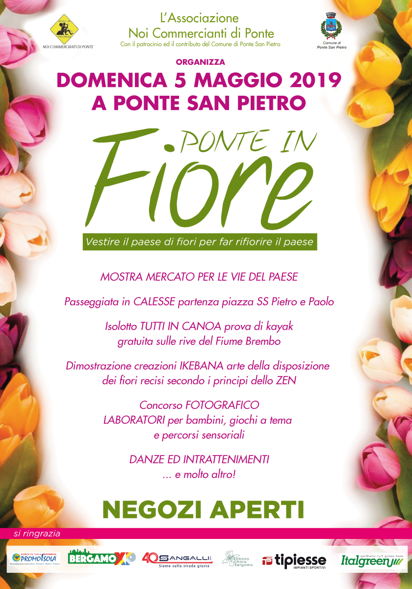 Domenica 5 maggio L’associazione Noi Commercianti di Ponte San Pietro invita tutti ad una giornata all’aperto all’insegna del divertimento tra negozi aperti, bancarelle, laboratori, musica e kayak sul fiume! «Ponte in Fiore» non è solo un evento domenicale, è una giornata ricca di esperienze per tutte le età!