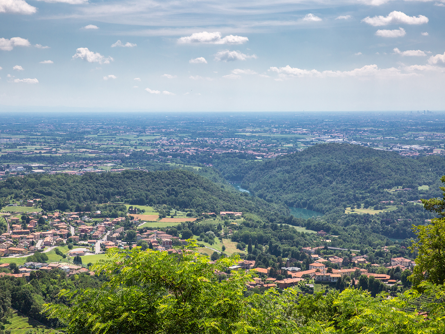 Da qui in poi, il paesaggio sottostante si rivela puntellato di distese coltivate a vigne e castagni, fino a Cabergnino. La vista viene ulteriormente ricompensata con l’affaccio dal balcone naturale del Monte Albano, da cui si ammira tutta la pianura padana, dal Monviso agli Appennini, e dove sorge anche il busto di una Madonna con incisa una poesia di padre Turoldo.
