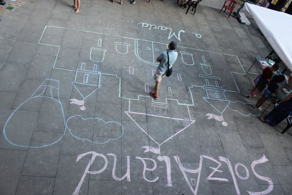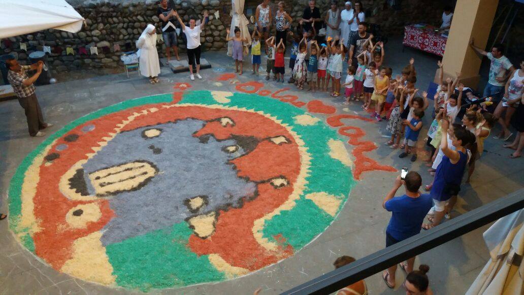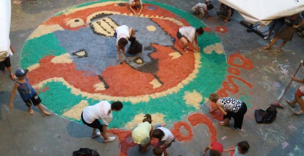 Alle 20 nel cortile del Castello verrà creato un grandissimo disegno sul pavimento che i bambini dovranno poi riempire e colorare con la… segatura colorata!