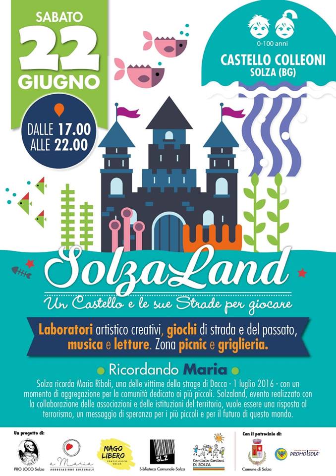 Sabato 22 giugno il centro storico di Solza e il castello che ha dato i natali a Bartolomeo Colleoni si animano di giochi e di laboratori artistici in ricordo di Maria Riboldi, solzese rimasta vittima, il 1 luglio 2016, nella strage di Dacca, in Bangladesh.